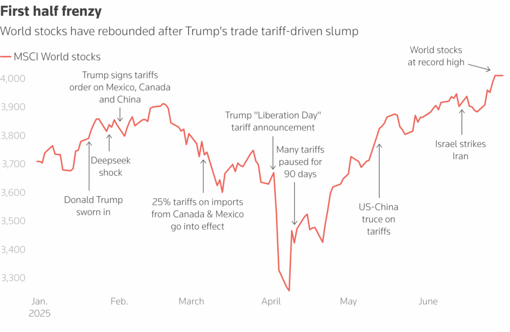 Představte si, že jedete horskou dráhou, která se během jízdy mění z prudkého pádu do strmého stoupání. A mezitím vám ještě někdo přehodí koleje. Tak nějak vypadalo první pololetí roku 2025 na finančních trzích.
